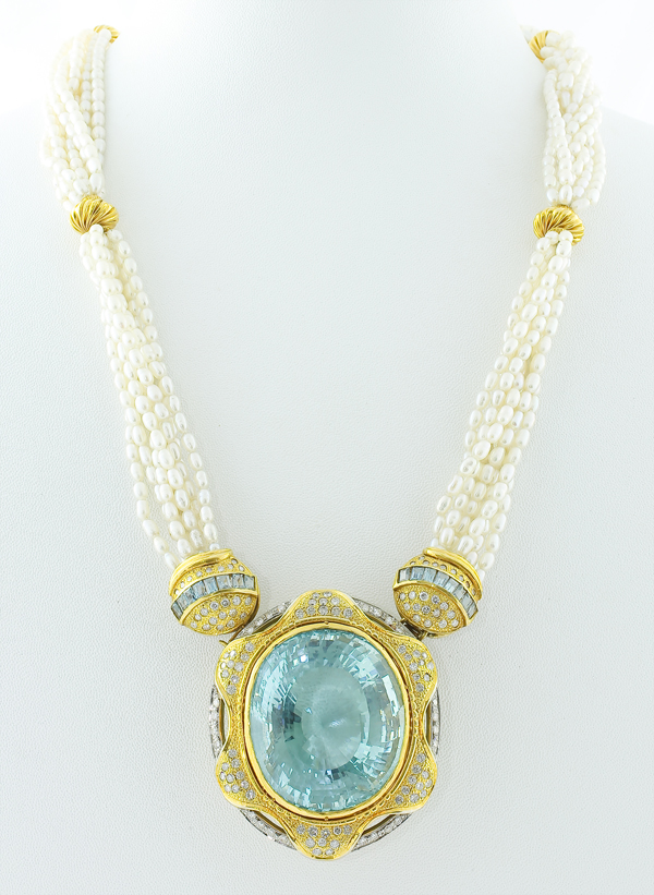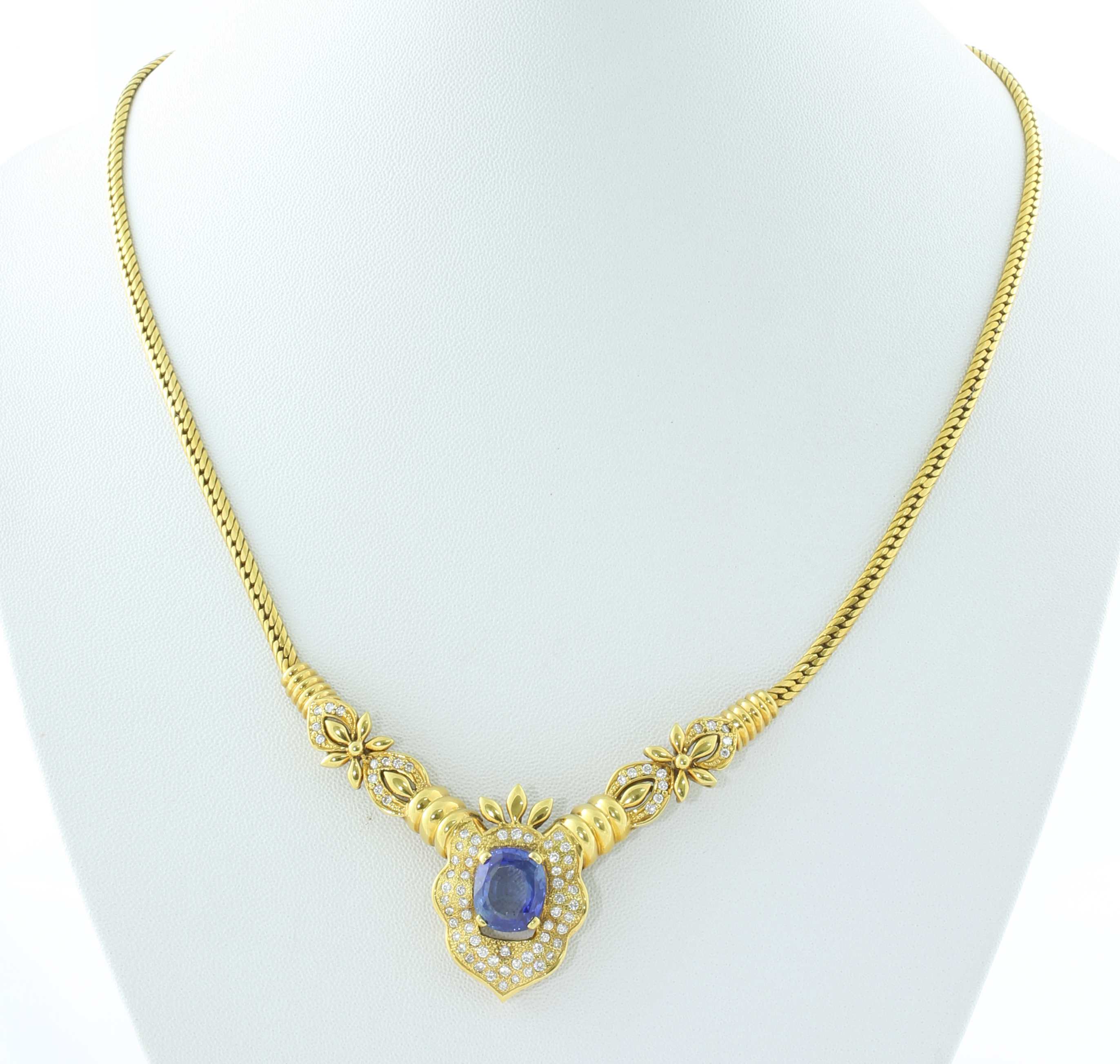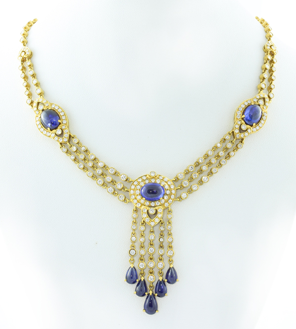 Blue Sapphire and Diamond 18kt Gold Necklace