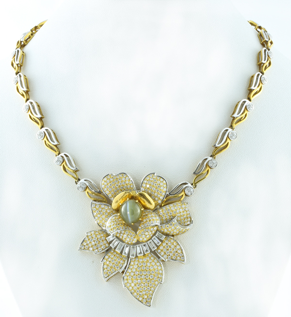 Cat’s Eye and Diamond , 18kt Gold Necklace